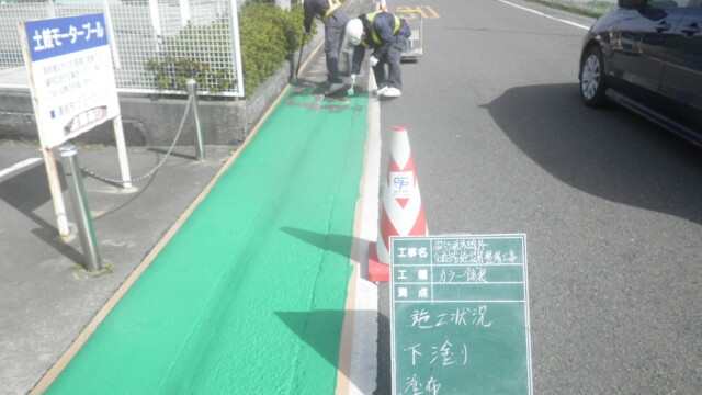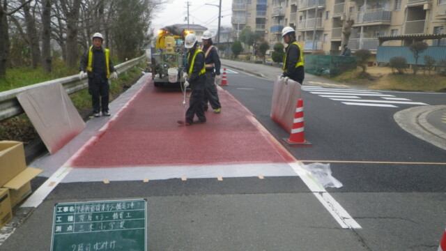 | 屋内、屋外ともに施工できる、密粒度アスコン面、コンクリート面用の水性シリカ反応型カラー舗装材です。兵庫県の設計によく見られます。 |